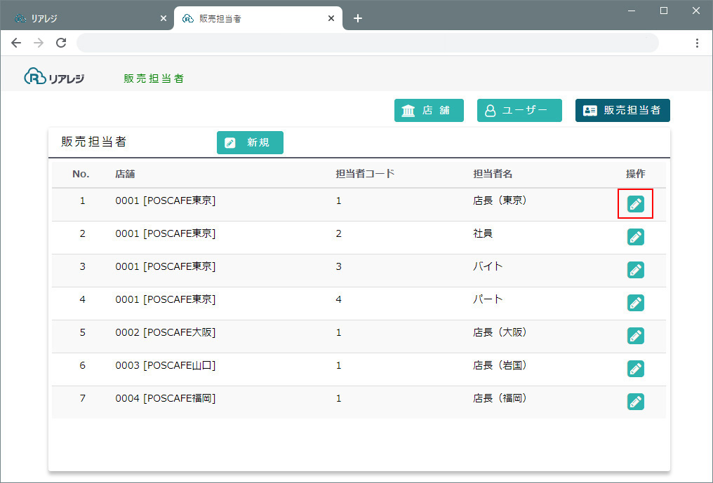 3-「販売スタッフ」を押します 4-「新規」を押します